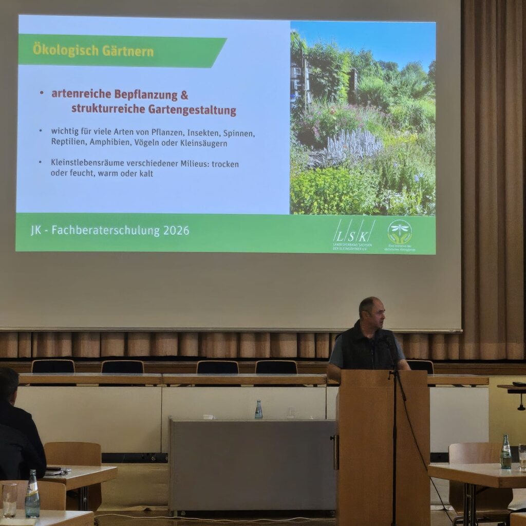 Im Rahmen der Fachberaterschulung zum Thema ökologisches Gärtnern informierte Jörg Krüger, Landesfachberater im LSK, über aktuelle Entwicklungen sowie praxisnahe Strategien für eine nachhaltige und naturgerechte Bewirtschaftung von Kleingärten.